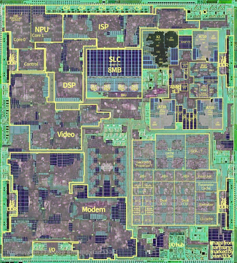 Exynos 2200 rather than large SRAM block(32KiB?) in CPU L2 like Google Tensor with high density,but with small SRAM block(16KiB with A510/NPU,and A710/X2 is smaller) in CPU L2.Which makes it shows lowwer density,in those case.