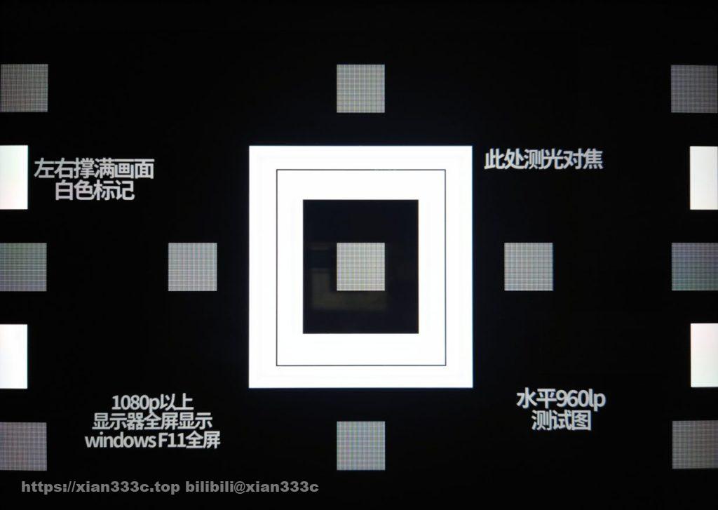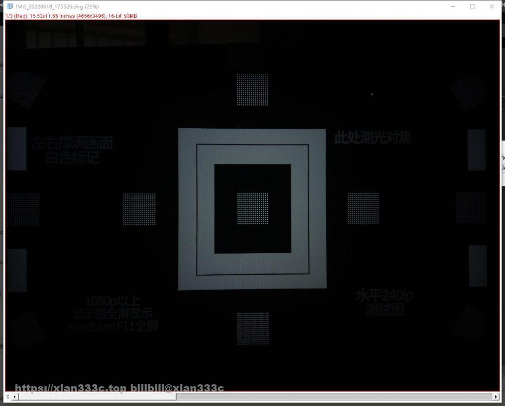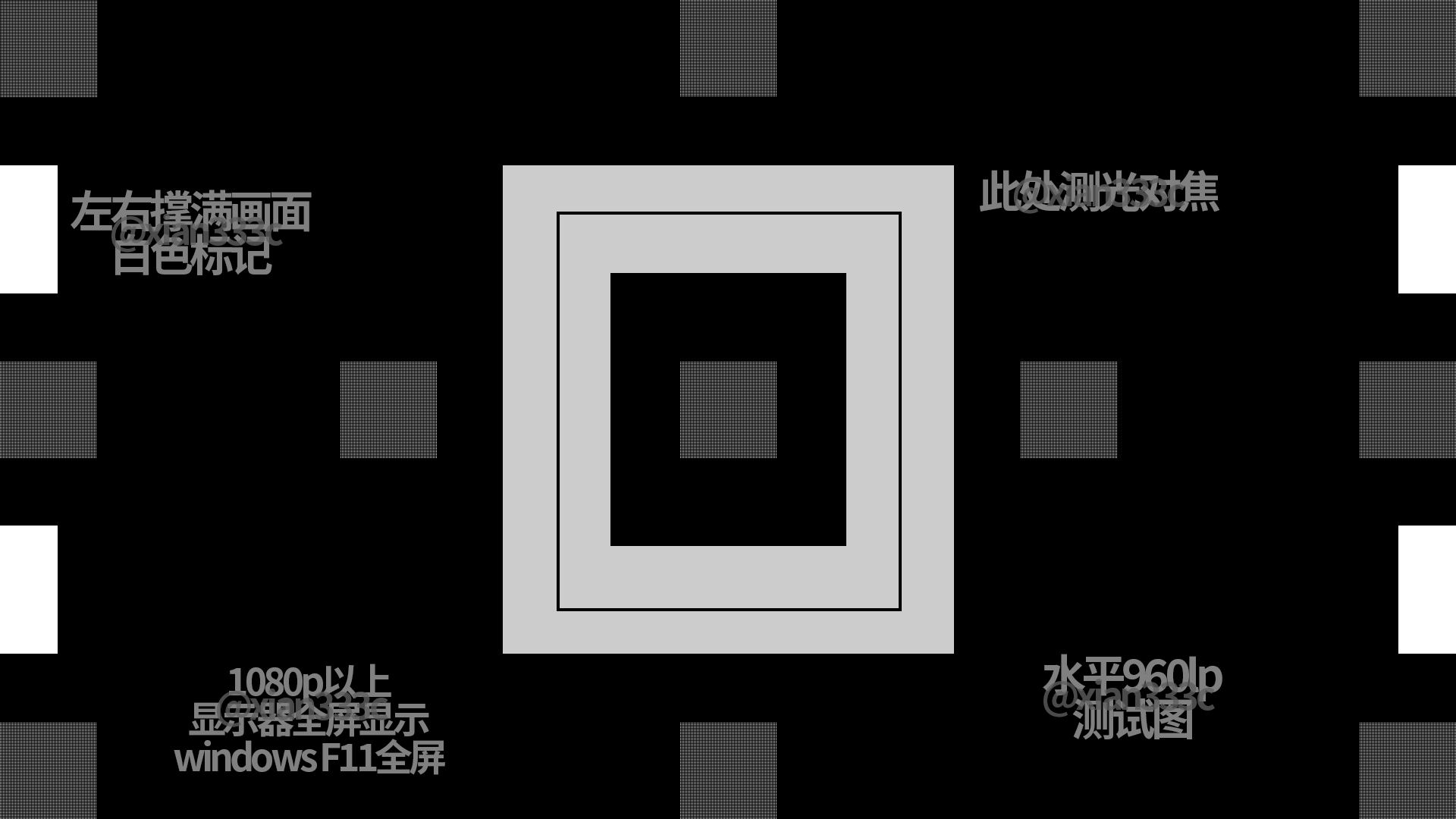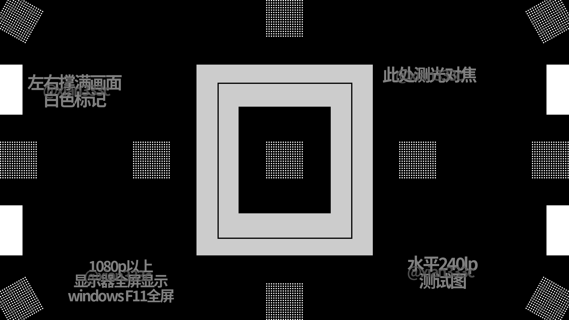 你需要在电脑屏上全屏(如果是1080p显示屏)或者1:1或者2:1显示测试图像,并使用第三方app对显示屏拍摄RAW图像。将以下测试图像打开并另存为png,并将显示屏亮度最高在没有杂光干扰(关灯就行)后使用。注意快门时间不能太长(图像会模糊)并最好找到肢体依靠稳定或者三脚架。