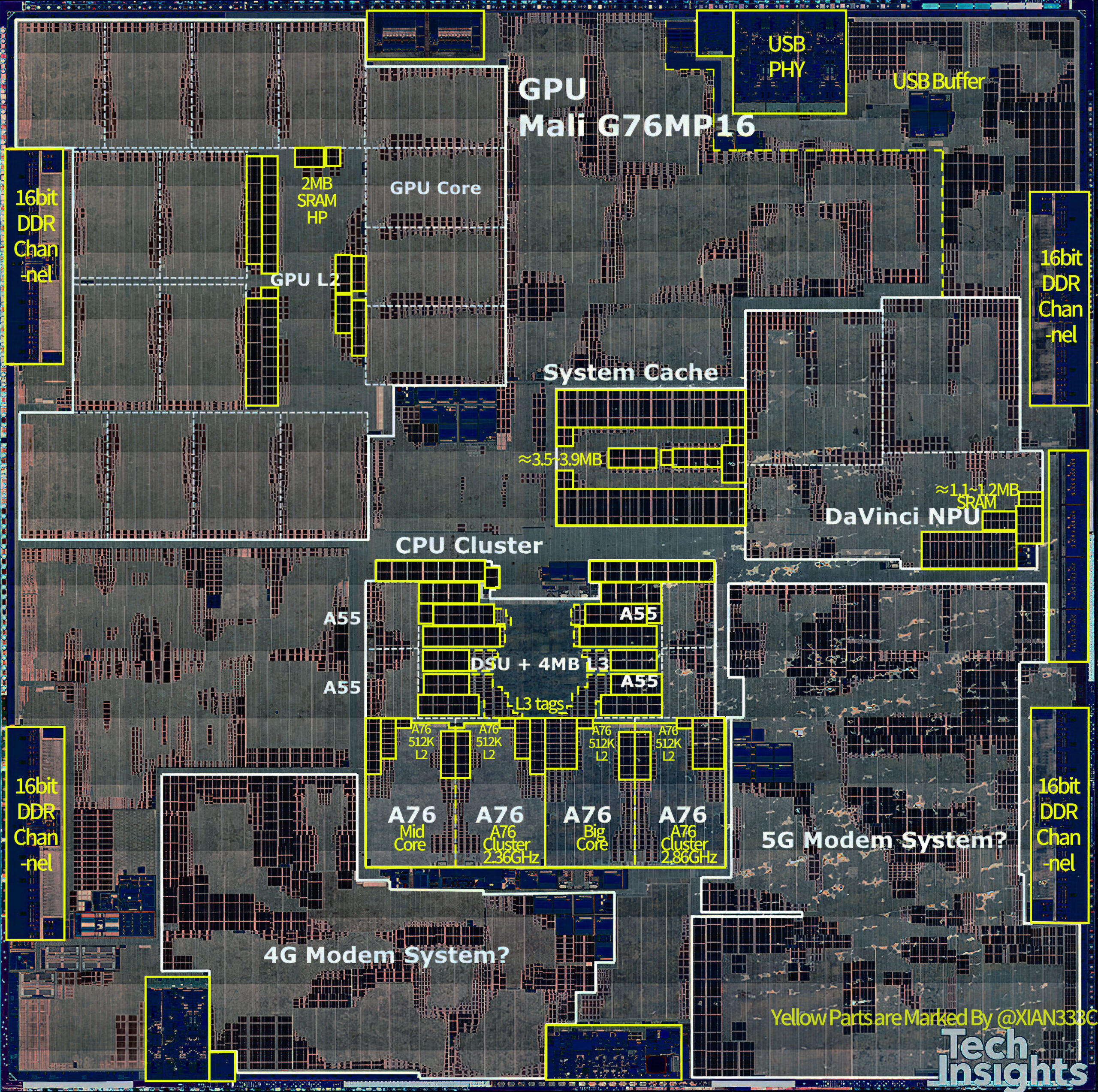 Image from Techinsights,yellow parts of floor plan are marked by me.